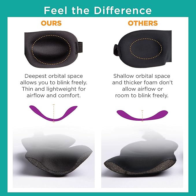 • REST IN COMFORT: Ultra lightweight latex-free molded foam is contoured for pressure free eye comfort that allows you to blink freely, won't smudge makeup, false lashes, or put unwanted pressure on your head