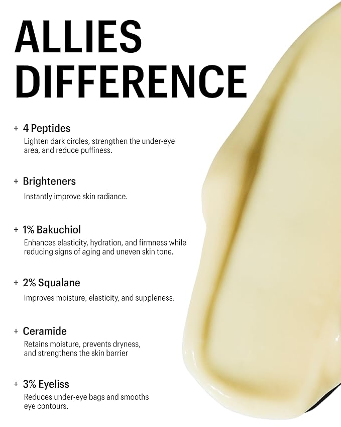 Allies of Skin Peptides Firming Eye Cream | Under Eye Moisturizer for Dark Circles & Puffiness | Bakuchiol, Ceramides and Vitamin C for Fine Lines and Under Eye Area | 0.5 oz