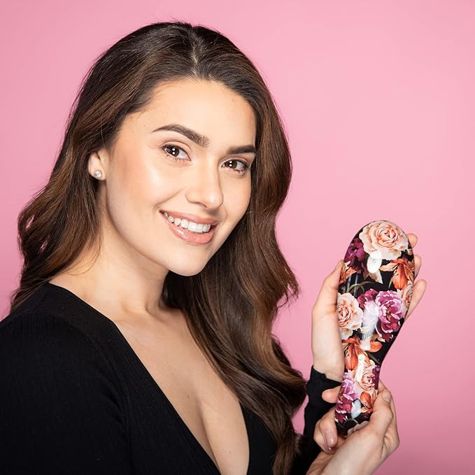 Supreme Brush + Cleaner, Gentle Detangling, Detangler Hair Brush for All Hair Types. For use on Wet or Dry Hair (Fuchsia Pink Floral)