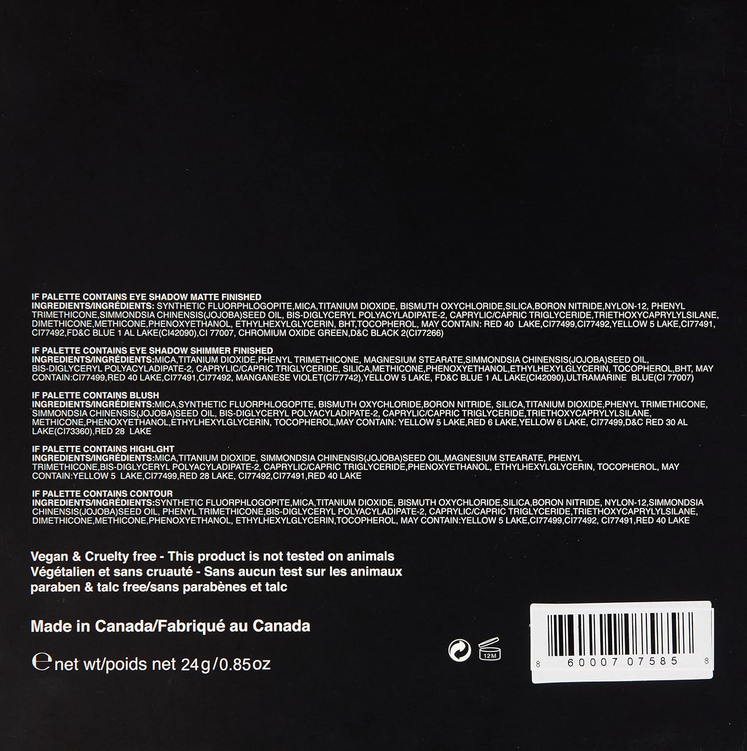 - Cruelty-free Cosmetics: Beauty that is as good as it looks! YANY Beauty Luxe Multiuse Palette is talc, gluten, and paraben free, vegan, and made only with clean, sustainable, and 100% cruelty-free ingredients that you can feel great about using. Our makeup, skincare, and beauty products are produced in professional facilities and never tested on animals.
