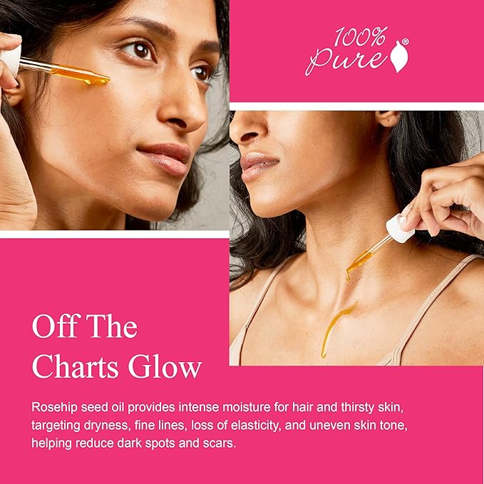 - OFF THE CHARTS GLOW - Rosehip seed oil provides intense moisture for thirsty skin, targeting dryness, fine lines, loss of elasticity, and uneven skin tone, helping reduce dark spots and scars.