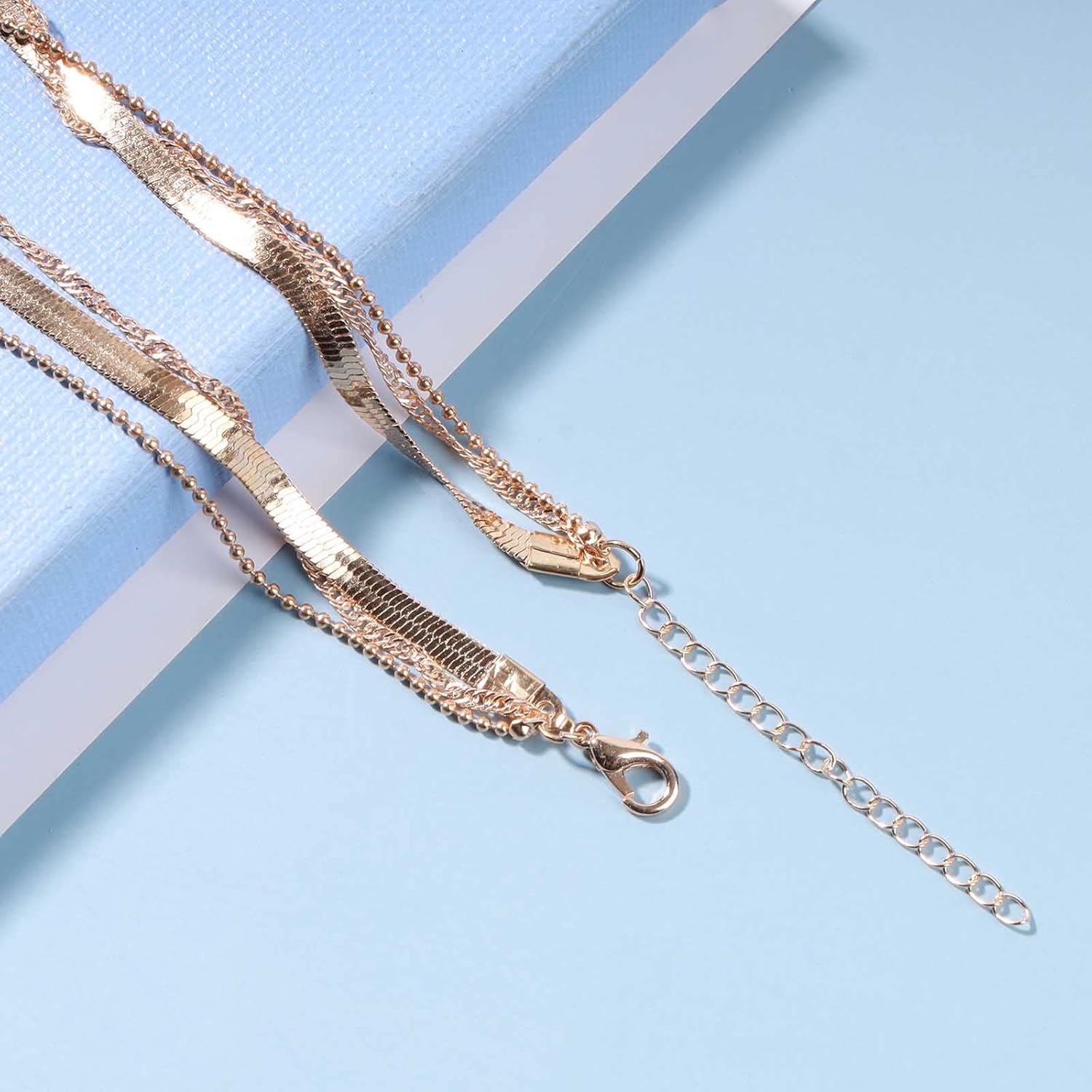 Punk Layered Chain Necklace Gold Flat Snake Chain Necklace Choker Vintage Herringbone Necklace Stacking Chunky Necklace Chain Jewelry for Women and Girls Gift