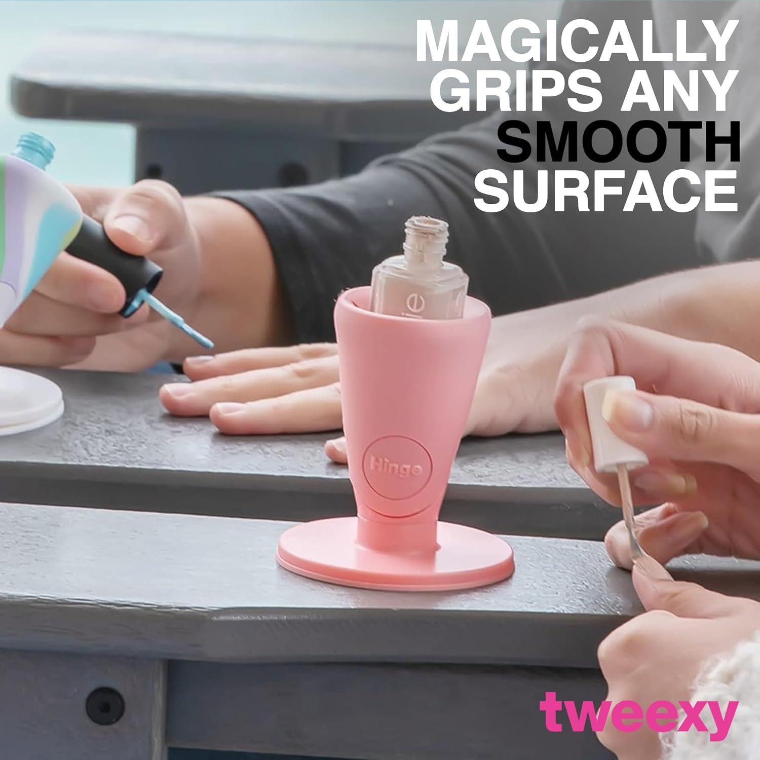 tweexy Hinge Untippable Nail Polish Bottle Holder | Anti-Spill Nail Polish Holder Stand, Tilted, IntelliStick Airlock Suction | Fingernail Painting, Nail Art Tools | Nail Polish Accessories (Blush)
