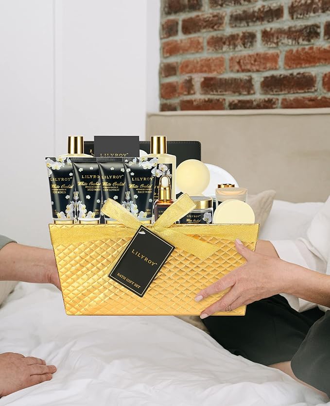 - Meet All Your Bath Needs: Shower Gel, Bubble Bath, Diffuser, Himalayan rocks, Jojoba Oil, Face Wash, Body Scrub, Body Lotion, Mud Musk, Bath Salt, Shower Steamer, Bath Bomb, Shower Gloves, Journal, Waffle Slipper packaged in a nice Golden Basket. The 18 pcs set offers the most luxurious and perfect bath experience
