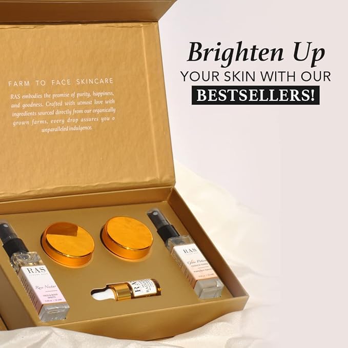 Quick Glow Kit, Hydrating Essence Toner, Exfoliating Face Cleanser, 24K Gold Face Elixir, Face Gel Serum, Face & Body Toner | Smoothens & Softens Skin, Deep Cleanser | Set of 5 - RAS LUXURY OILS