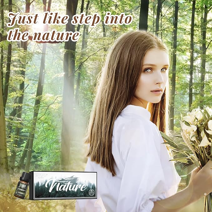 - PACKAGING: This perfume oil includes: a flip-top paper box with internal paper partitions to prevent collision, anti-collision foam, a thick amber glass bottle with a transparent leakproof inner cap that can control the liquid flow rate and black threaded cap, 6x0.33 Fl Oz premium scented oils, including fragrance Woody Forest, Fern Fresh Air,Oriental Gourmand Rainbow, Woody Fern Ocean, Floral Green Grassland and Floral Fruity Morning Rain .