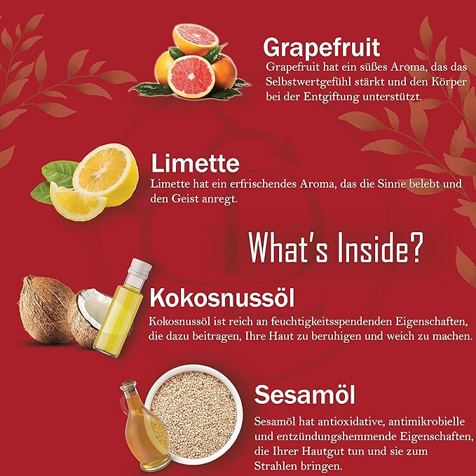 - OUR SECRET: Grapefruit has a sweet aroma which brings self-esteem. Lime has a refreshing aroma that uplifts the senses and stimulates the mind. This blend of essential oils is refreshing, stimulating to the body and mind and brings a spark to your mood.