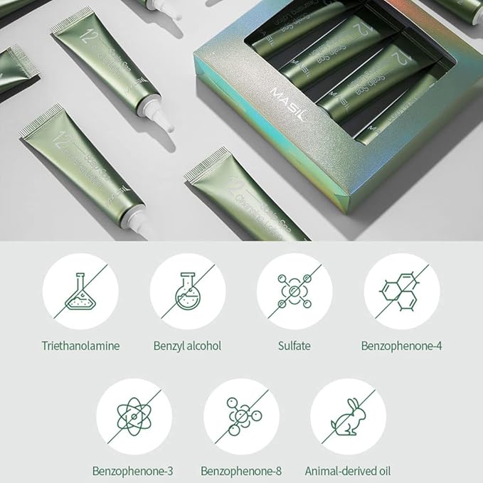 Masil 12 Scalp Lotion Scalp Spa AHA BHA Cleansing Lotion Scalp Care Calming Moisturize Sooth Nourish Scalp Dandruff Dry Itchy Scalp Scaling 1Pack 0.5Floz X 4ea Travel Portable