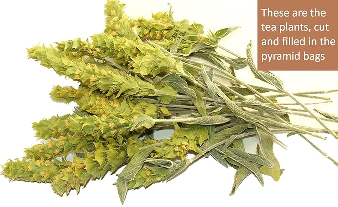 - High quality soothing medicinal herbal tea coming from Mount Olympus in Greece; Organic farming. Pyramid tea bags filled with unmixed cut Sideritis scardica loose leaf tea