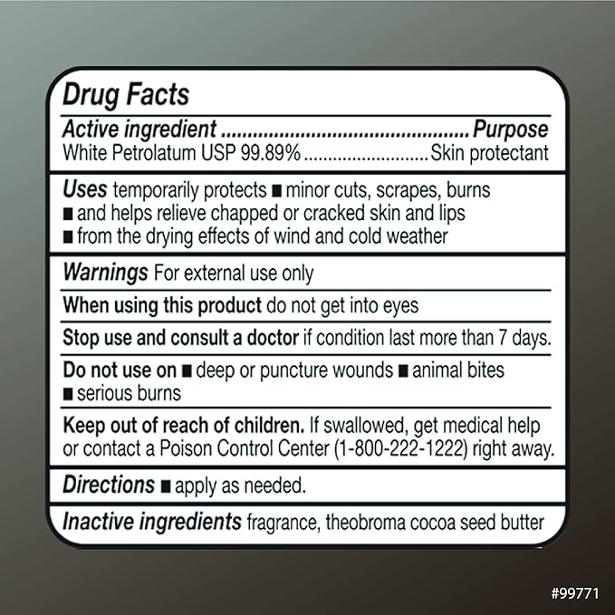 - Active Ingredients : Petroleum Jelly