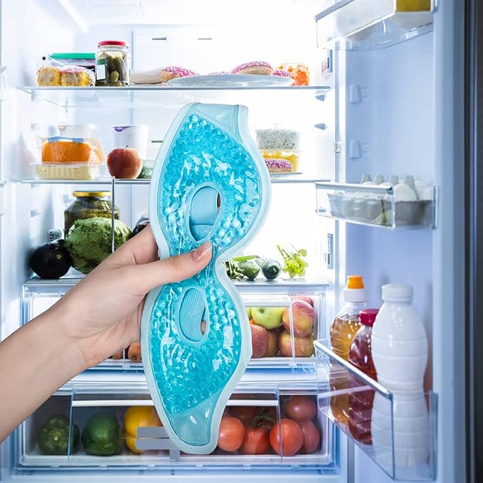 - Hot & Cold Therapy : cold compress - refrigerate for 40-60 minutes (control time according to personal preference). The Ice Eye Mask comes in a resealable bag for healthy storage and longer product life or to keep out refrigerator odors. Heat Compress - Put it in the microwave and heat it on medium-high heat for 10 seconds at a time.