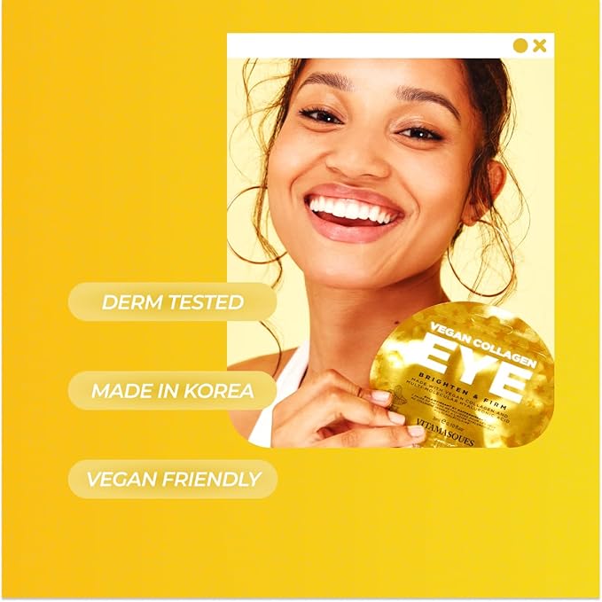 - UNDER EYE PATCHES: Vitamasques Vegan Collagen Eye Pads are a vegan-friendly pair of eye pads with brightening and firming effects and skin-gel technology for a contour-hugging fit. Includes 3 individually packaged pairs of eye pads.
