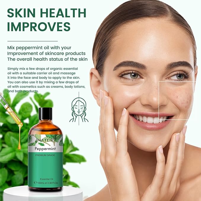 - 【ABOUT THE USE OF PHATOIL PEPPERMINT ESSENTIAL OIL】: BE SURE TO DILUTE BEFORE USE. For direct skin contact, it is recommended to carry out a patch test before use, we select the scents from nature, extract them in the best way, and offer this gift of nature to our customers. It can be added to skincare products or used as a massage oil to take care of everyone who uses essential oils