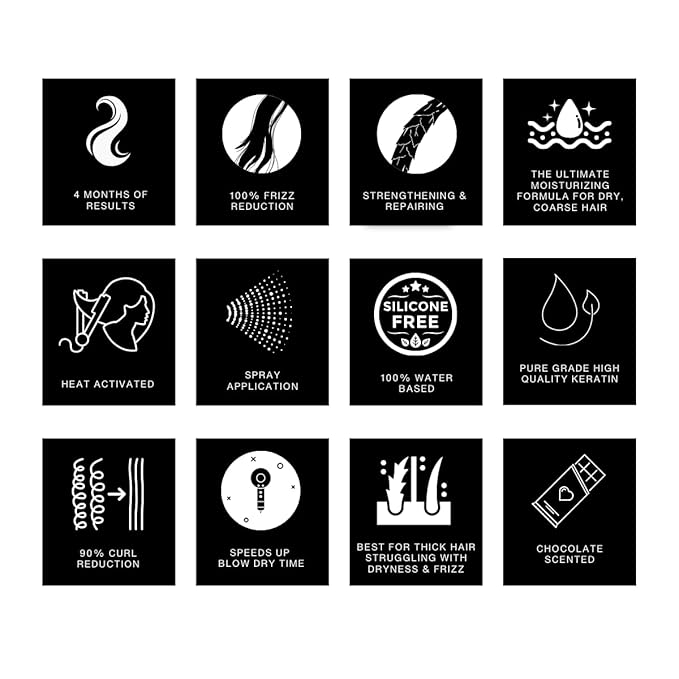 - Keratin & Cacao Oil Infused: This anti frizz hair product luxurious treatment is packed with Keratin to strengthen and repair hair while Cacao Oil deeply nourishes and moisturizes, restoring health and vitality. It enhances your hair’s natural shine, making it look vibrant and smooth from root to tip.