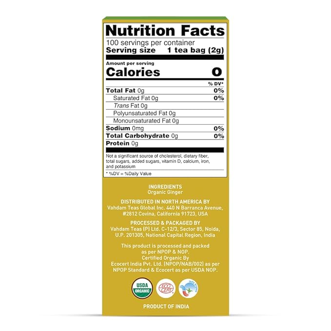 - PACKED IN ECO-CONSCIOUS TEA BAGS - Our eco-conscious Ginger tea bags are carefully packed in rounds free from dyes, chemicals, adhesive, glue, and chlorine bleach. Savor toxin-free, premium Ginger tea that's pure and refreshing.