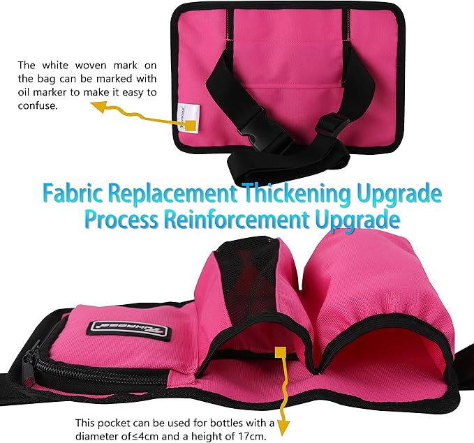 - 4、There are two big pockets and one small pocket in front which can be temporarily replaced with bottles of different capacities. The two big pockets can be used with bottles of diameter ≤2.36inch and height 9.45inch. One of them is made into a pocket in the form of mesh cloth, which is convenient to watch the capacity of the bottle; In addition, a small pocket can be used for a bottle with a diameter ≤1.57inch and a height of 6.69inch;