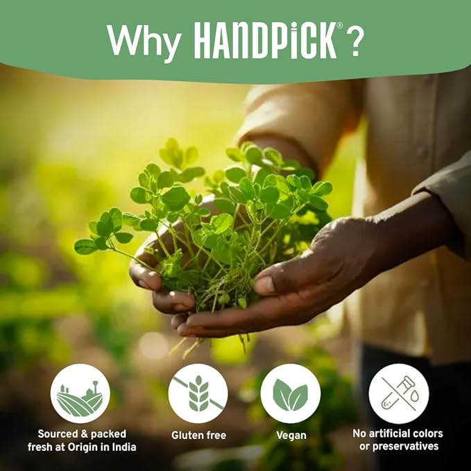 HANDPICK, Organic Moringa Tea Bags (100 Count) Non-GMO, Caffeine Free, Pure Moringa Leaves | Sweet and Light Herbal Tea Bags, Round Eco-conscious Teabags