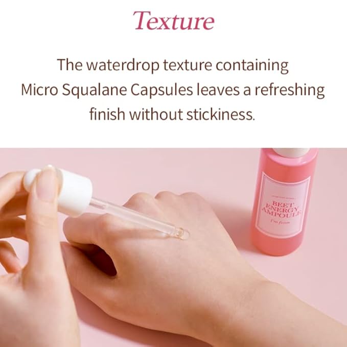 - 🌟 DEEP NOURISHMENT WITH MICRO SQUALENE CAPSULES: Micro Squalane Capsules in this ampoule nourish deep inside the skin. The active ingredients of red beet and skin-friendly plant-derived Micro Squalane Capsules penetrate deeply, providing radiance and nourishment. The waterdrop texture with Micro Squalane Capsules leaves a refreshing finish without stickiness.