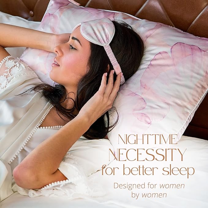 - NIGHTTIME NECESSITY FOR BETTER SLEEP: A must-have night mask for nighttime and naptime, our sleep masks for women block out light so your beauty sleep isn’t interrupted, improving your overall sleep quality. By blocking light, this sleeping mask promotes melatonin production (the body’s natural sleep hormone) to support deep, restorative sleep. It also features an elasticated band designed for extra comfort. Pair it with our matching silky smooth pillowcase and scrunchies for an unbeatable nighttime hair and skincare system