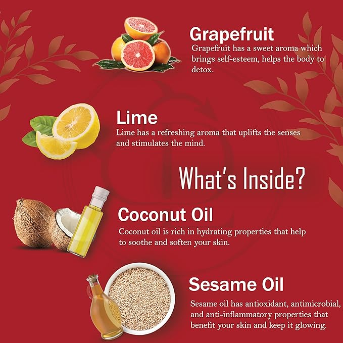 Organic - Edible Citrusy Sensual Massage Oil for Couple Date Night | for Intimate Moments Passion Body Glide No Stain & Non-Sticky | with Coconut Oil, Natural Grapefruit & Lime