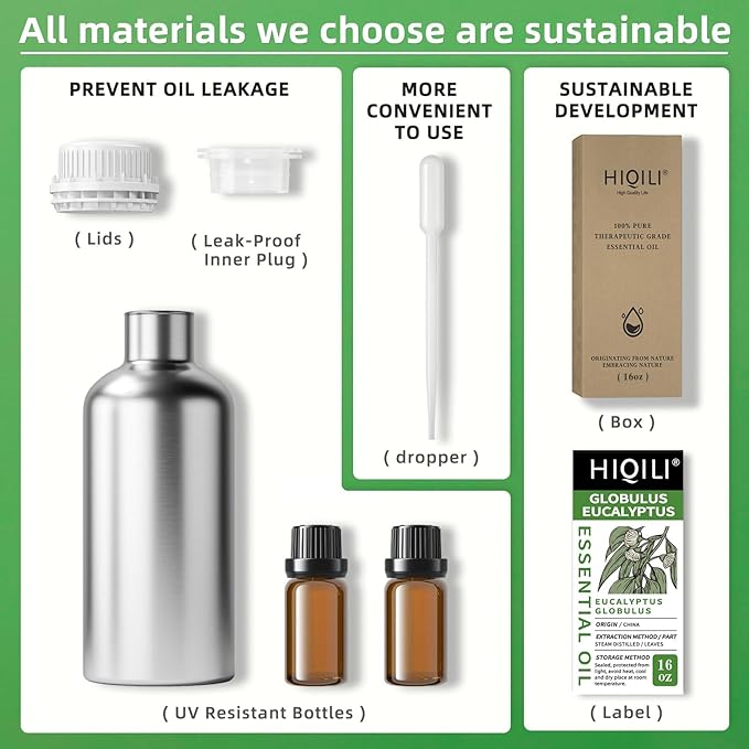 HIQILI Eucalyptus Essential Oil for Spray, Diffuser & Skin, 100% Pure Undiluted - 16 Fl Oz