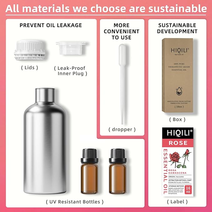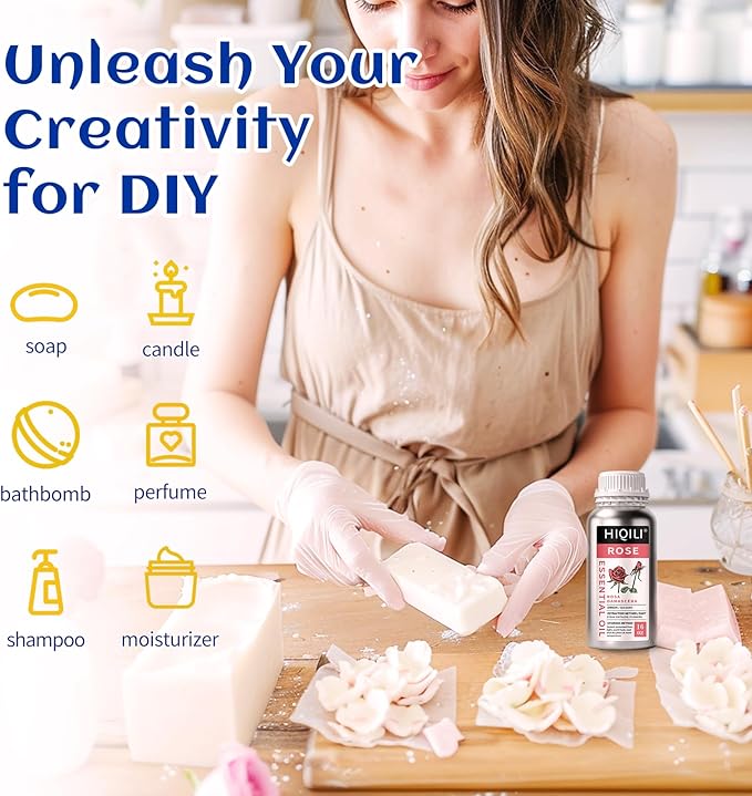 HIQILI Rose Essential Oil for Diffuser, Soap, Perfume & Candle Making - 16 Fl Oz