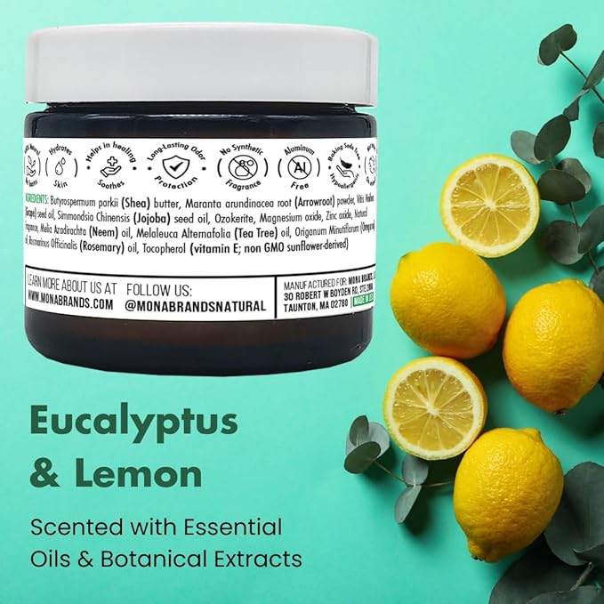MONA Natural Foot Balm for Dry Cracked Feet & Heels | Moisturizing Foot Cream for Athletes | Callous Repair & Foot Odor Treatment (Eucalyptus & Lemon, 2.0 Oz (Pack of 1))