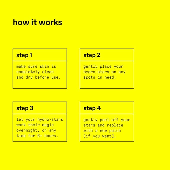 - EASY TO USE: Always apply to clean, dry skin (after cleansing and before moisturizing). Replace with a new star in the morning, or after 6+ hours.