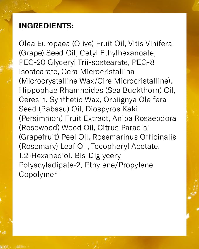 - NUTRIENT-RICH FORMULA: Seaberry oil softens and protects skin, giving the balm its bright yellow color. Plus, persimmon extract, olive oil and vitamin E help cleanse the skin. The seaberry coloring and citrus fragrance notes varies the balm's scent and color. Our Cleanser helps reduce acne break outs.