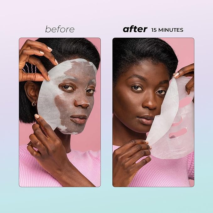 - FACE MASKS: Vegan-friendly brightening and hydrating face mask enhances your skin's protection from daily environmental factors such as pollution and sun exposure. The triple-layer sheet mask has increased moisture retention and enhanced absorption rates within the skin during application. Includes 7 Sheet Masks.