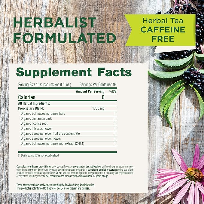 Traditional Medicinals Tea, Organic Immune Zoom Elderberry Echinacea, Supports Immune Function, 96 Tea Bags (6 Pack)