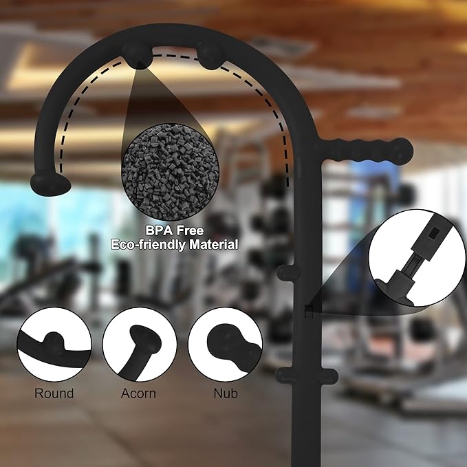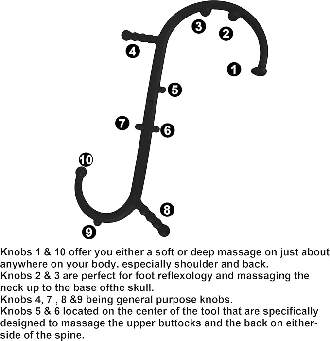 - 10 Massage Knobs: This highly durable and stable massager rod has 10 massage knobs with 3 types - the acorn shape for deep tissue, round for gliding over larger muscle groups, and nub for the lower back. pinpoint the pressure points throughout your body, when pressed against various trigger points or pressure points throughout the body, can provide rapid relief