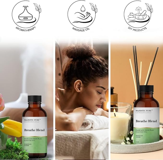 - Aids Easy Deep Breathing: Majestic Pure Breathe Essential Oil Blend is a great tool to help clear and effortless breathing; Seasonal sensitivities can often result in heavy breathing or airway obstruction; this blend helps ease breathing so that you have one less thing to worry about