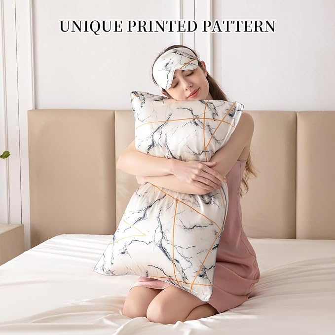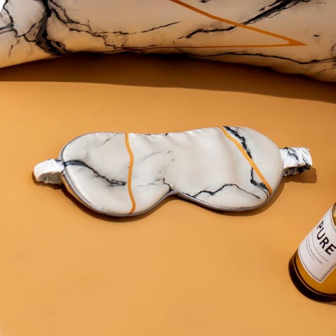 THXSILK Sleep Mask 100% 19 Momme Pure Mulberry Silk Super Smooth Cooling Decorative Sleep Eye Mask Blackout Eye Cover with Wide Head Strap, Marble-White