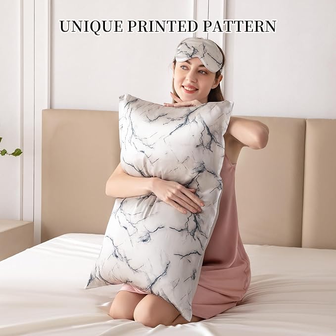 THXSILK Sleep Mask 100% 19 Momme Pure Mulberry Silk Super Smooth Cooling Decorative Sleep Eye Mask Blackout Eye Cover with Wide Head Strap, Marble-Grey