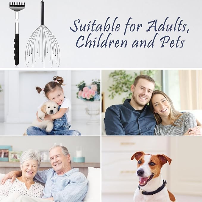 Head Massager Back Scratcher, 20 Fingers Head Scratcher Scalp Massager & Extendable Back Scratcher for Men Women, Stocking Stuffers for Deep Relaxation, Stress Relief & Hair Stimulation