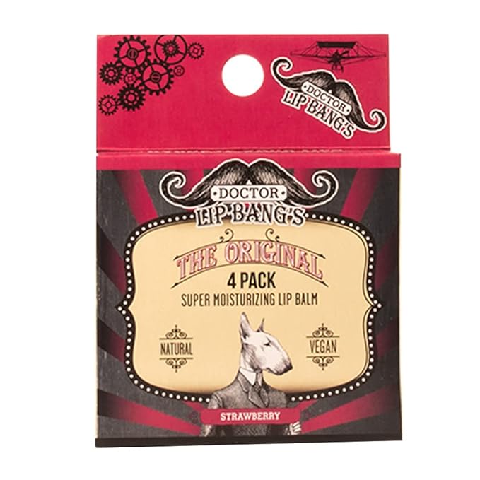 Dr. LIP BANG’S Super Moisturizing Lip Balm | 4 Pack | Strawberry| ALL NATURAL & CRUELTY FREE | 100% VEGAN | FOR DRY & CRACKED LIPS