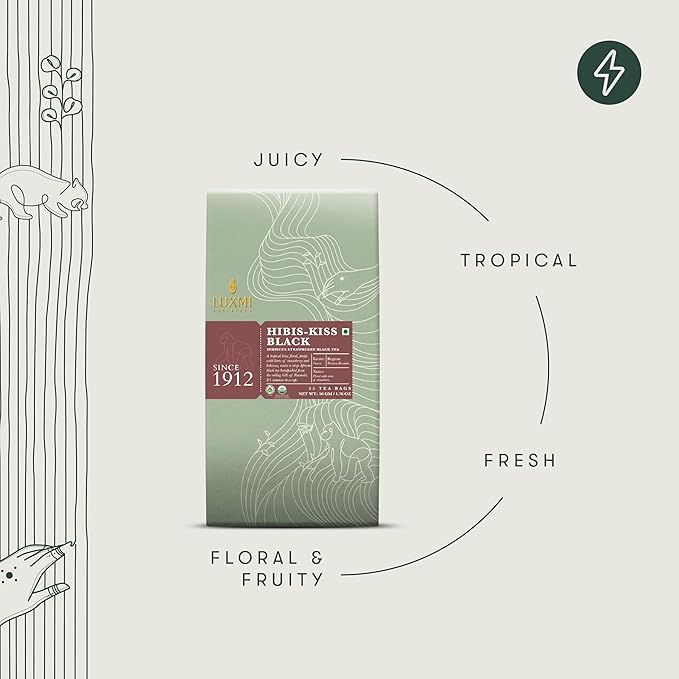 Luxmi Estates - Hibis-Kiss - Organic Hibiscus Tea - 25 Tea Bags | With Hibiscus, Strawberry, Organic Black Tea and Other Natural Extracts | Juicy, Triopical and Fresh
