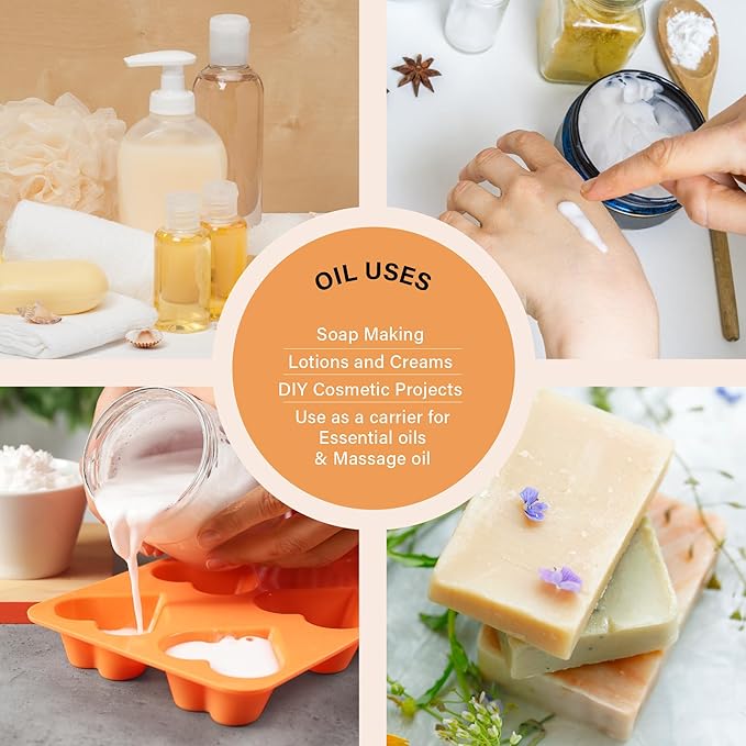 - SOAP MAKING OIL USES - Sweet Almond Oil is perfect for making cold process handmade soap, DIY craft projects, lotions and creams, hair and skin care, aromatherapy, natural lubricant, moisturizer, carrier oil for essential oils, massage oil and much more.