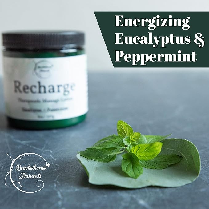 Recharge Massage Lotion for Massage Therapy & Home Use | Cream for Effortless Glide Massaging Body Lotion | Shea Butter, Coconut Oil, Eucalyptus, Peppermint Essential Oil - Brookethorne Naturals