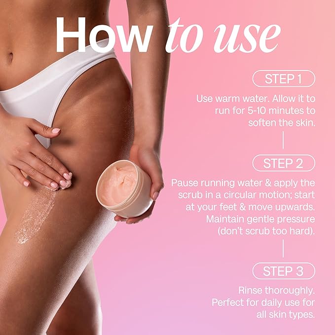 - TREAT YOUR SKIN TO GENTLY, DAILY EXFOLIATION Designed for daily use, our body scrub can be added to your shower routine to give your skin a deeper cleanse, exfoliating dead skin cells and build up on the skins upper surface.