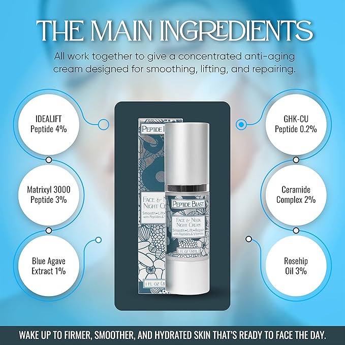 - Scientifically Backed Potency: Contains 5% niacinamide for smoothing, and balancing skin tone. Targeted Peptide Complex: Includes Matrixyl 3000 and Idealift peptides to visibly improve elasticity and reduce the appearance of fine lines and wrinkles. Deep Hydration: Hyaluronic acid and ceramides work together to restore moisture and strengthen the skin barrier. Blue Agave Extract: Soothes irritation and enhances the skin’s natural radiance. No Filler Ingredients: Every ingredient is included at its functional percentage—nothing added just for marketing.