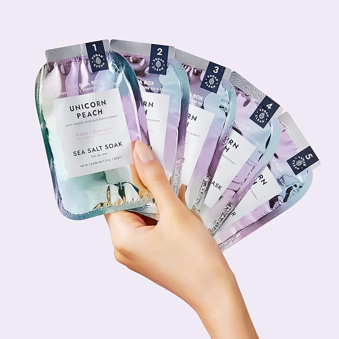 VOESH Pedi in a Box Glimmer - 2 Packs, Unicorn Peach, Pedi in a Box, Spa Pedicure Kit, Sparkly Pedicure, DIY Pedi, Foot Care, At-Home Pedi Products, Vegan Skincare
