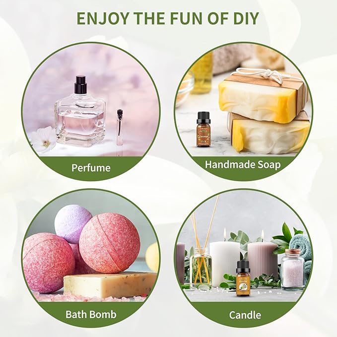 - Variety Uses & Applications: Suitable for diffuser, clean, spa massage, skin care, perfume, home, bedroom, living room, bathroom,office, aromatherapy,outdoors,soap or candle making, yoga room, and car,etc.