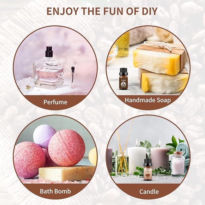 - Coffee Scent Oil: The aroma of coffee essential oil smells like freshly roasted coffee beans, with the sweet smell of nuts and oils. Permeating your home with this rich and warm aroma can bring a sense of peace and calm.