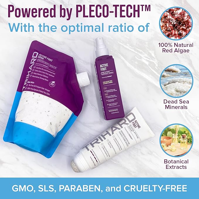 TRIHARD Active Foot Spa Kit - Foot Spray, Foot Soak Salts, Exfoliating Soap - Pedicure Set for Dry, Cracked Feet - Detox Foot Soak With Epsom Salts - Scrubber, Callus Remover
