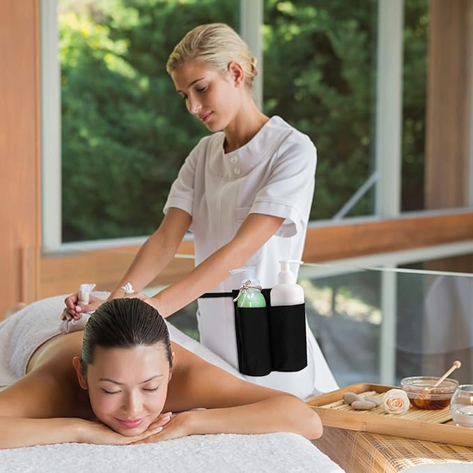 - 【Large Capacity】The massage bottle holster have 2 pockets, you can place 2 bottles at the same time, convenient for the operation of massagist. Massage holster belt can not only be used to put massage lotion, but also store phones, gloves, pens, car keys and other related tools