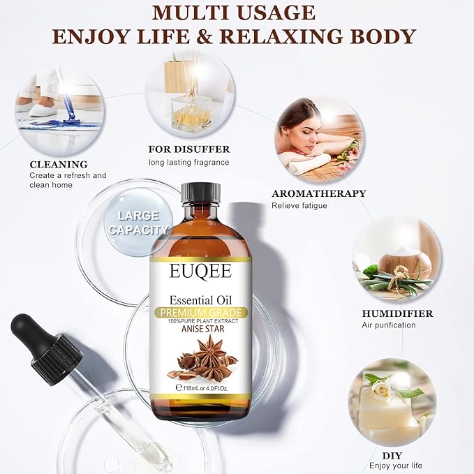 Anise Star Essential Oil 4oz / 118ML Large Capacity Anise Star Oil Pure & Premium Fragrance Essential Oil with Glass Dropper for Candle Soap Making, Diffusers