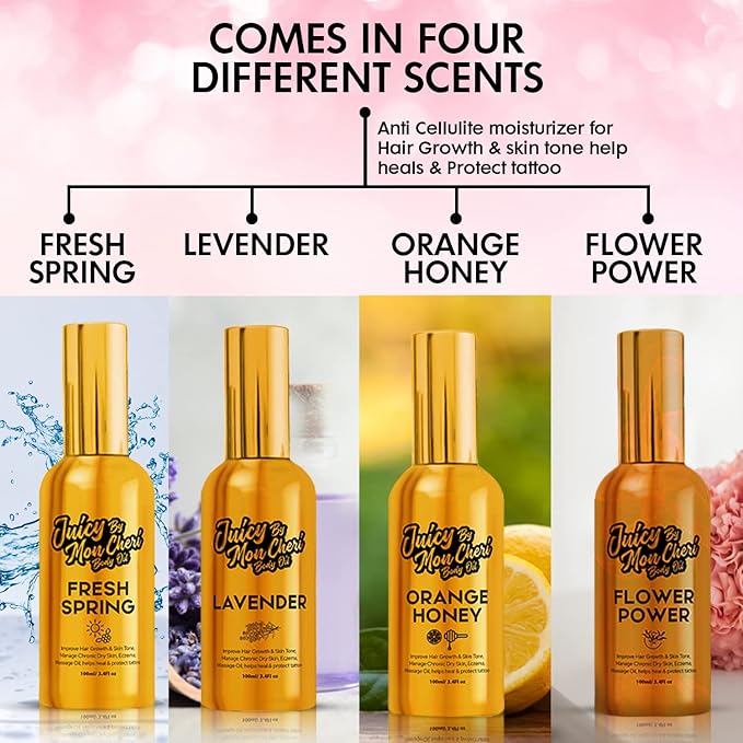- ✅ DAY AND NIGHT CARE- This Juicy by Mon Cheri Body Oil can be used in the morning and at night.