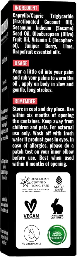 Organic - Berry Full Body Massage Oil - Revitalising, Detoxifying | No Stain & Non-Sticky | with Fractionated Coconut Oil, Lime & Juniper Berry Oil - 8.45 Fl Oz